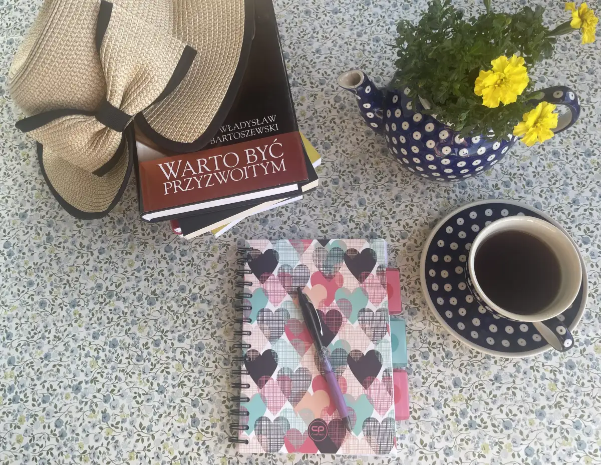 Razem ze mną pracuje ona. Aksamitka, zasadzona w dzbanku z Bolesławca, który pamięta wiele lat mojego życia. Siedzimy razem z kubkiem gorącej kawy – bo przecież innej nie pijam. Czasem zdarza się, że pisanie wciągnie mnie tak mocno, że kolejny łyk kawy okazuje się zimny – i wtedy kawę pije ona. A ja idę po dolewkę świeżej!