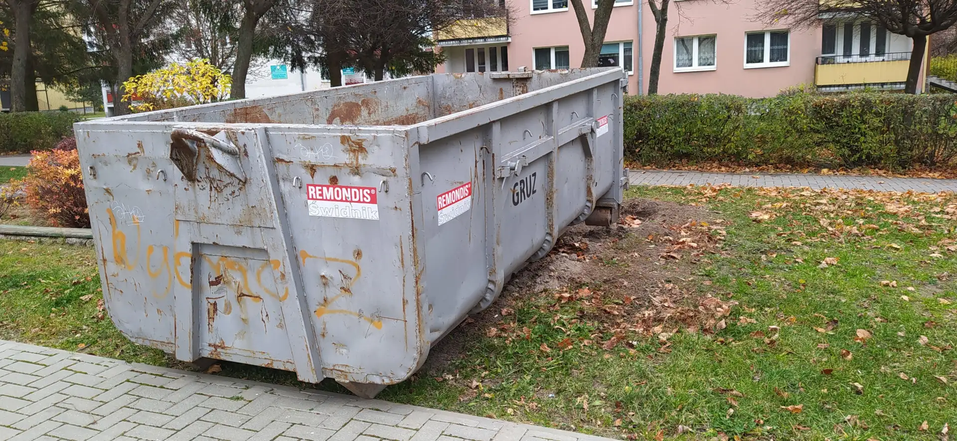 Kontener wypełniony gruzem.