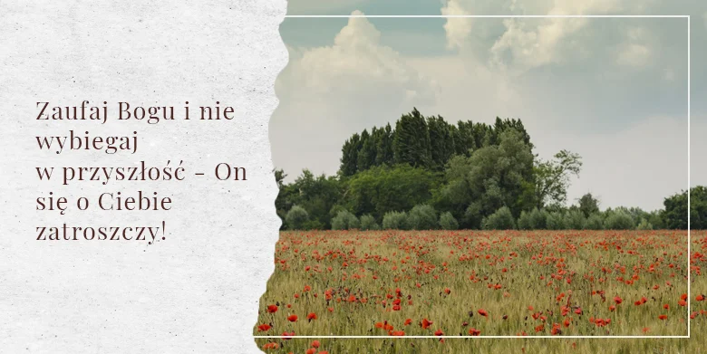 Ewangelia Mateusza 6,31Dobrze jest mieć cel na przyszłość i plan jego realizacji. Ale nie jest dobrze wybiegać w przyszłość i martwić się wszystkim, co może pójść nie tak. To sieje niepokój, który nie powinien mieć miejsca w twoim umyśle, jako odkupionego dziecka Bożego.