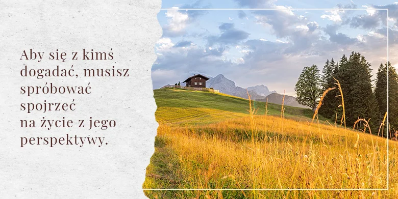 List do Kolosan 3,12John Gray napisał bestsellerową książkę Mężczyźni są z Marsa, kobiety z Wenus. Jej podstawowa teza jest następująca: aby się z kimś dogadać, musisz spróbować spojrzeć na życie z jego perspektywy. A to nie jest łatwe. Apostoł Paweł pisał: „Przyobleczcie się w serdeczne współczucie, w dobroć, pokorę, łagodność i cierpliwość. Znosząc jedni drugich i przebaczając sobie nawzajem, jeśli kto ma powód do skargi przeciw komu: Jak Chrystus odpuścił wam, tak i wy. A ponadto wszystko przyobleczcie się w miłość, która jest spójnią doskonałości. A w sercach waszych niech rządzi pokój Chrystusowy” (w. 12-15).