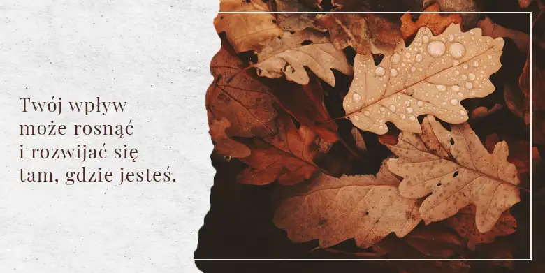 Ale nie musisz być Georgem Washingtonem, Abrahamem Lincolnem czy Matką Teresą, by coś zmienić. Twój wpływ może rosnąć i rozwijać się tam, gdzie jesteś. W swoim „Psalmie Życia” amerykański poeta, Henry Wadsworth Longfellow, pisze: „Życie wielkich ludzi przypomina nam, że również nasze życie możemy uczynić wyjątkowe; odlatując, pozostawiamy za sobą ślady stóp na piasku czasu”.